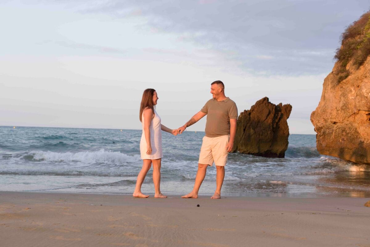 A finales de agosto de 2025 tuvimos el placer de compartir una de esas sesiones que se quedan grabadas para siempre. Carlos y Aida decidieron empezar su historia de preboda de una forma muy especial: madrugando para recibir juntos la salida del sol en la costa de Tamarit.